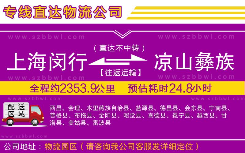 上海閔行區(qū)至涼山彝族自治州貨運公司全程約2353.9公里,專線運輸用時大約24.8小時,可運輸直達(dá)西昌、會理、木里藏族自治縣、鹽源縣、德昌縣、會東縣、寧南縣、普格縣、布拖縣、金陽縣、昭覺縣、喜德縣、冕寧縣、越西縣、甘洛縣、美姑縣、雷波縣;遵利物流可承接:整車運輸、零擔(dān)運輸、大件運輸、轎車托運、危險品 136-7195-8853 點擊撥打電話